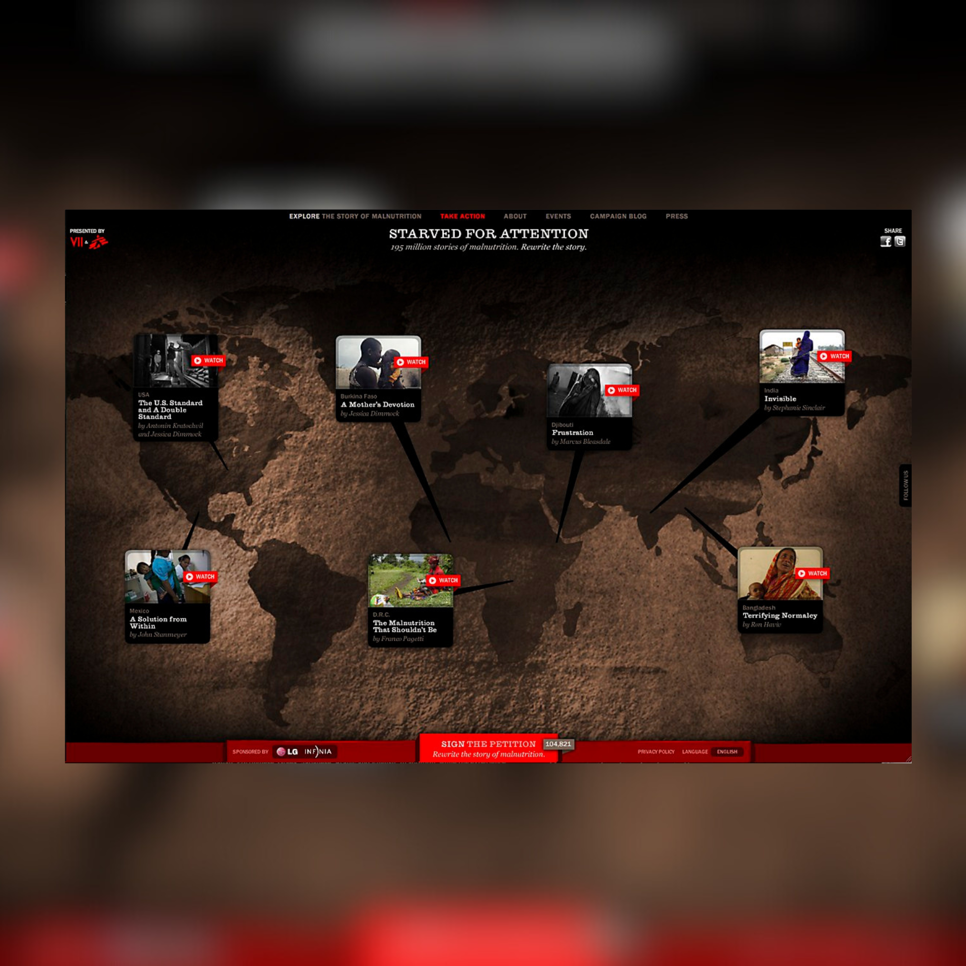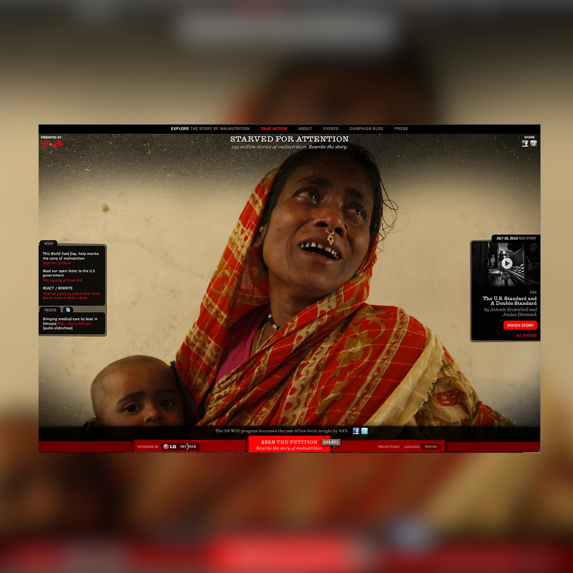 In partnership with VII Agency, we developed the storyline, Starved For Attention, and 7 documentaries created by elite photojournalists to help tell unique malnutrition stories around the world.